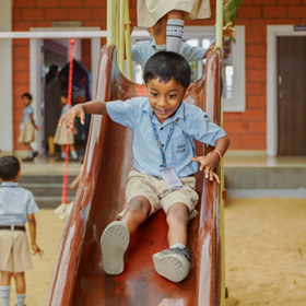 Centered around English, Kids Club CBSE’s language policy mandates that children speak English not only in classrooms but also in the corridors, washrooms, playgrounds, staircases, and literally everywhere on campus. In this context, even school vans are considered mobile campuses.